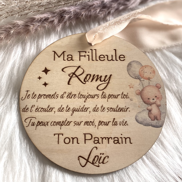 Carte bois Filleule - Filleul - Cadeau pour baptême